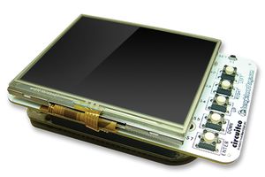 - The 3.5" TFT LCD screen, attached to the topside of the board, can display up to a resolution of 320x240 and is a 4-wire resistive touchscreen.